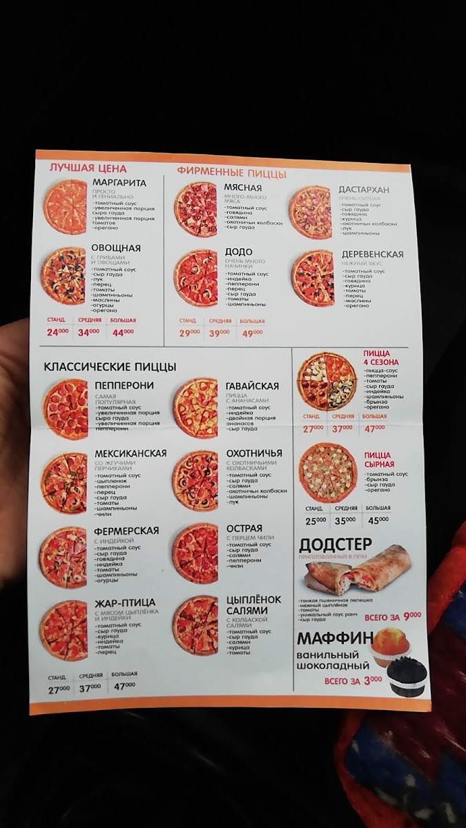 The menu at Dodo Pizza on Nurafshon Street 8 in Fergana offers a satisfying blend of classic and inventive flavors, making it a strong choice for both casual diners and pizza enthusiasts. The Cheese Pizza stands out for its perfectly balanced combination of creamy cheese and a golden, crisp crust, while the Mushrooms Pizza delivers earthy richness that complements its delicate seasoning. For those seeking something heartier, Пицца Чизбургер is a playful twist on a familiar favorite, layering savory burger flavors over a traditional pizza base. Meat lovers will appreciate Мясная Ассорти Колбаса 3-х Видов, which showcases a generous mix of three types of sausage, offering a robust and satisfying experience. Finally, the 4 Сезона Пицца impresses with its harmonious blend of seasonal toppings, allowing each bite to highlight a different flavor profile. Overall, the menu strikes a balance between classic simplicity and creative indulgence, making it easy to find a pizza that appeals to every palate.